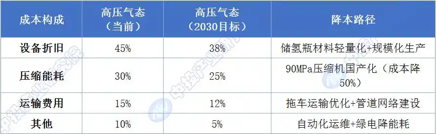 圖表氫儲運(yùn)成本結(jié)構(gòu)分析與下降路徑